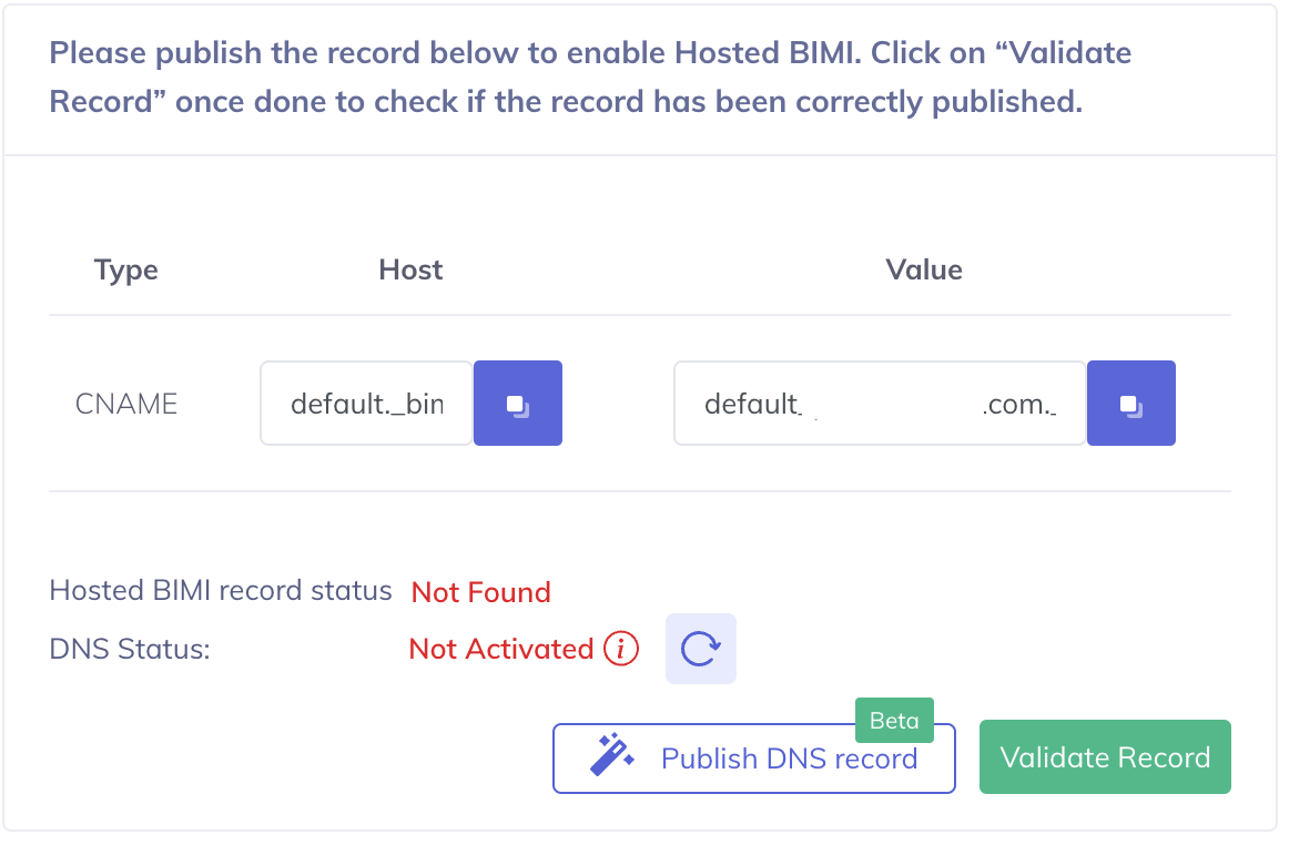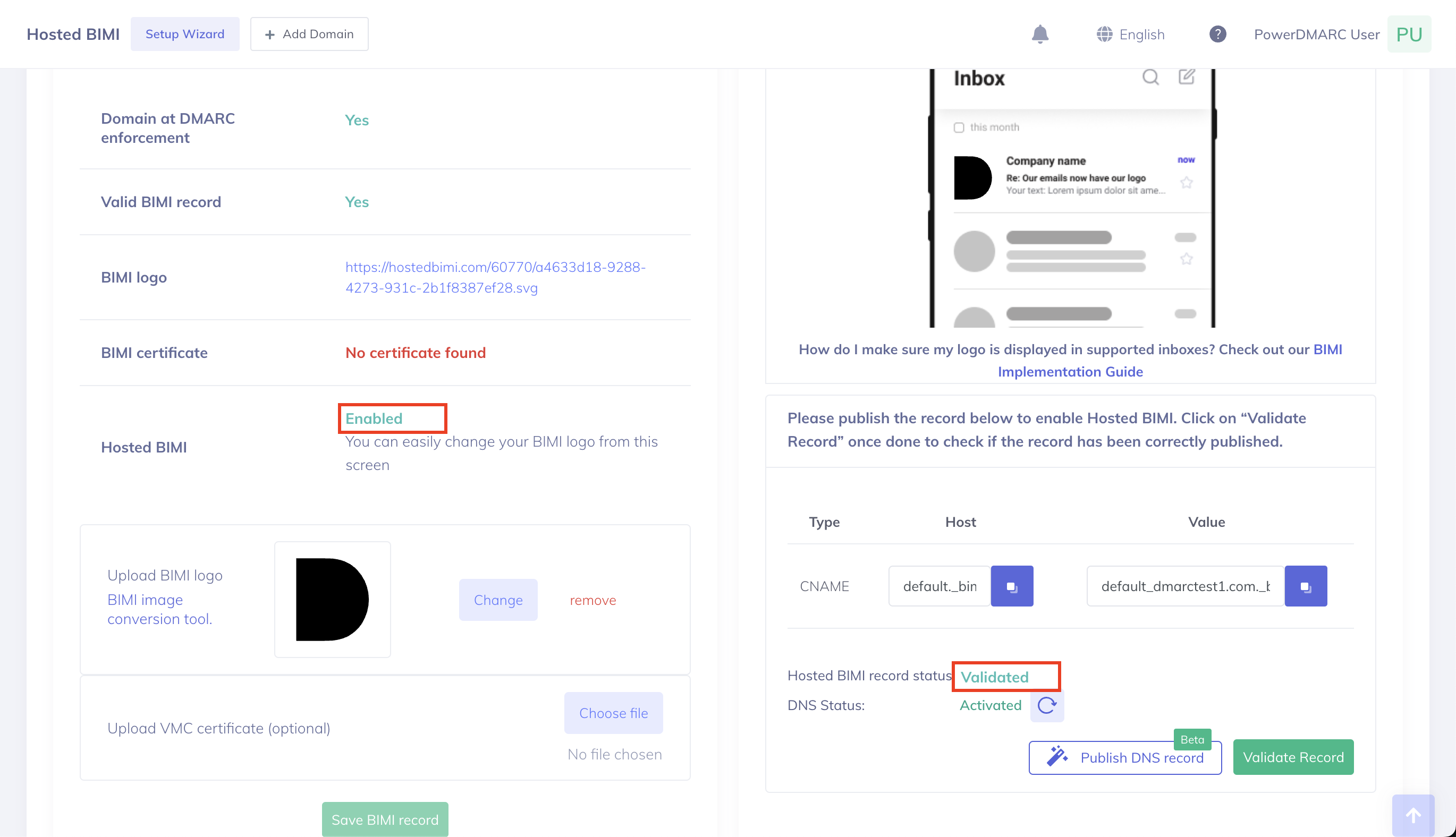 レコードが検証されると、Hosted BIMIがお客様のドメインで有効になります。